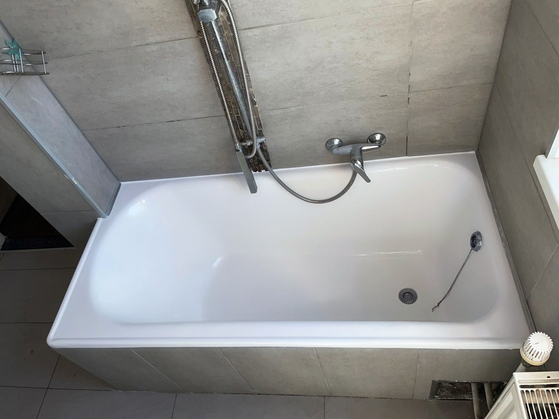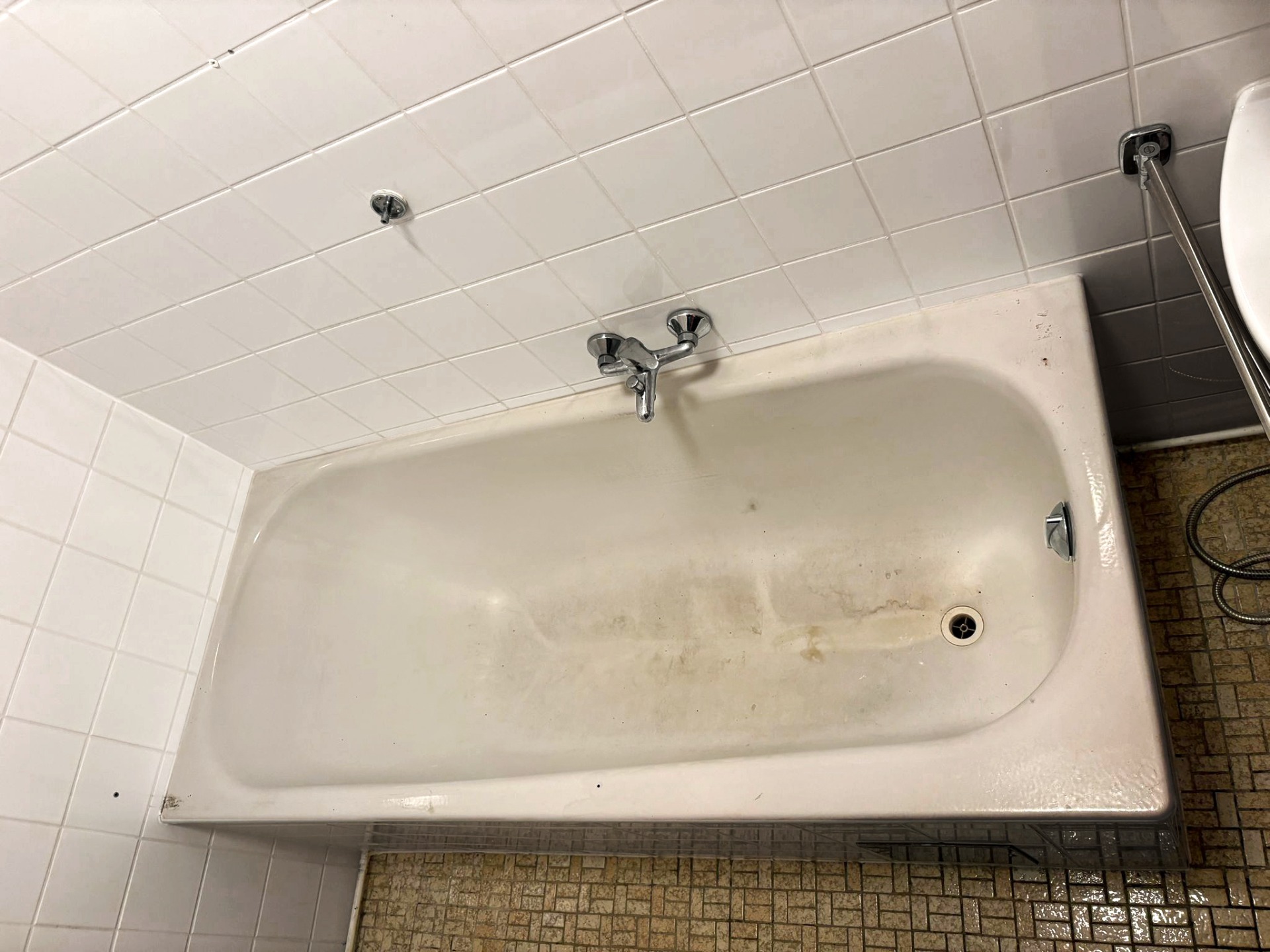 Es kann jedoch in seltenen Fällen vorkommen, dass nach der Beschichtung kleine Lackteile rund um den Siphon abblättern, wenn die Badewanne bereits rostig war und Staub eingeschlossen wurde.