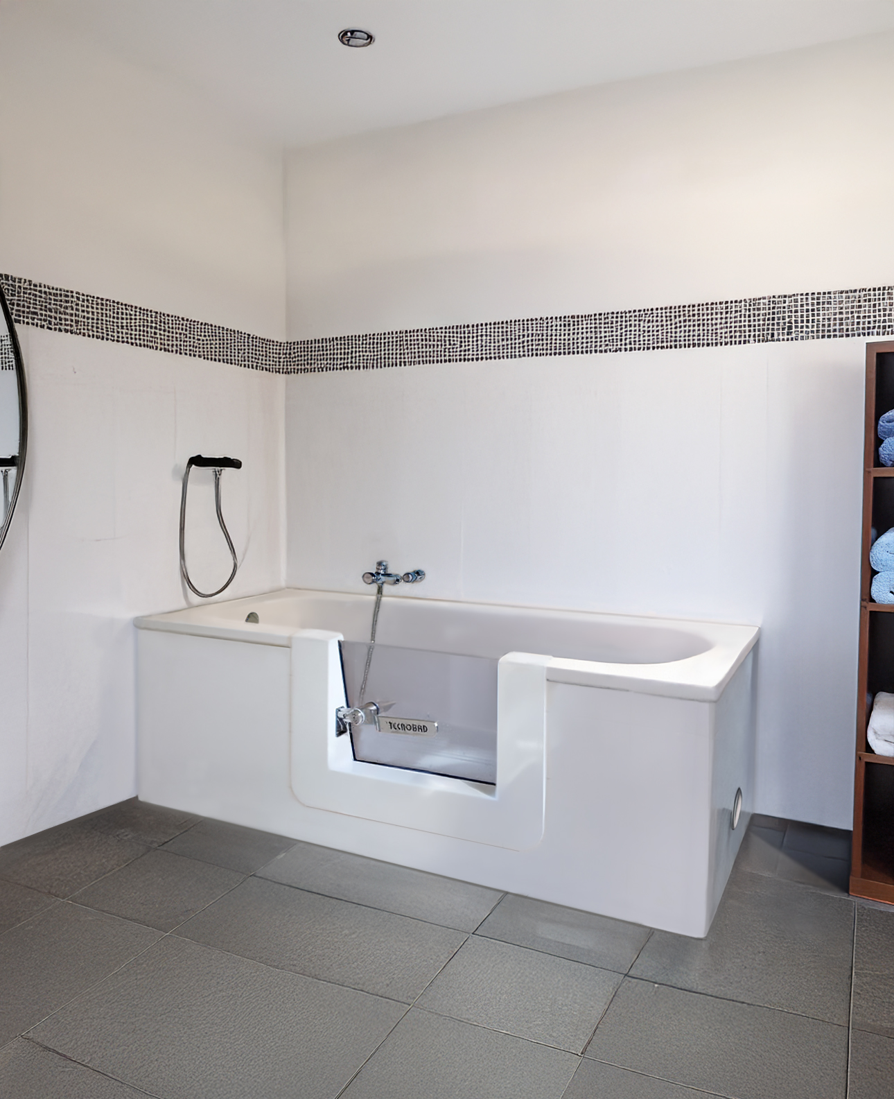Durch die Wannentür die Badewanne zu betreten und verlassen ist beinahe so, wie