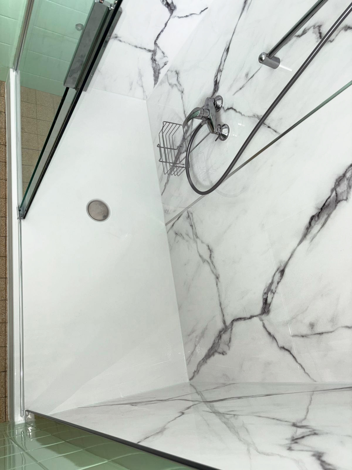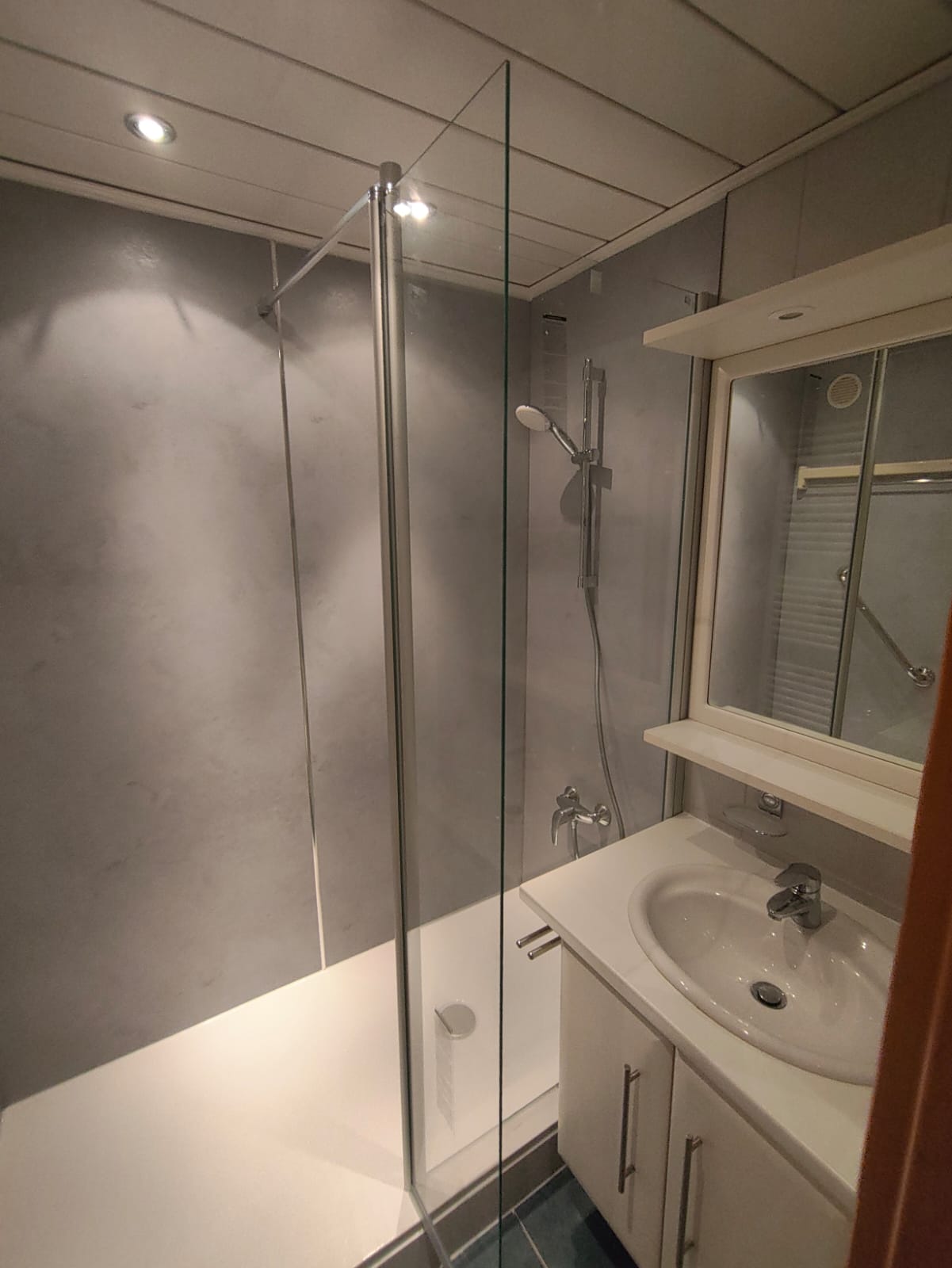 Duschkabine mit Schiebetüre und HSK RenoDeco-Platten