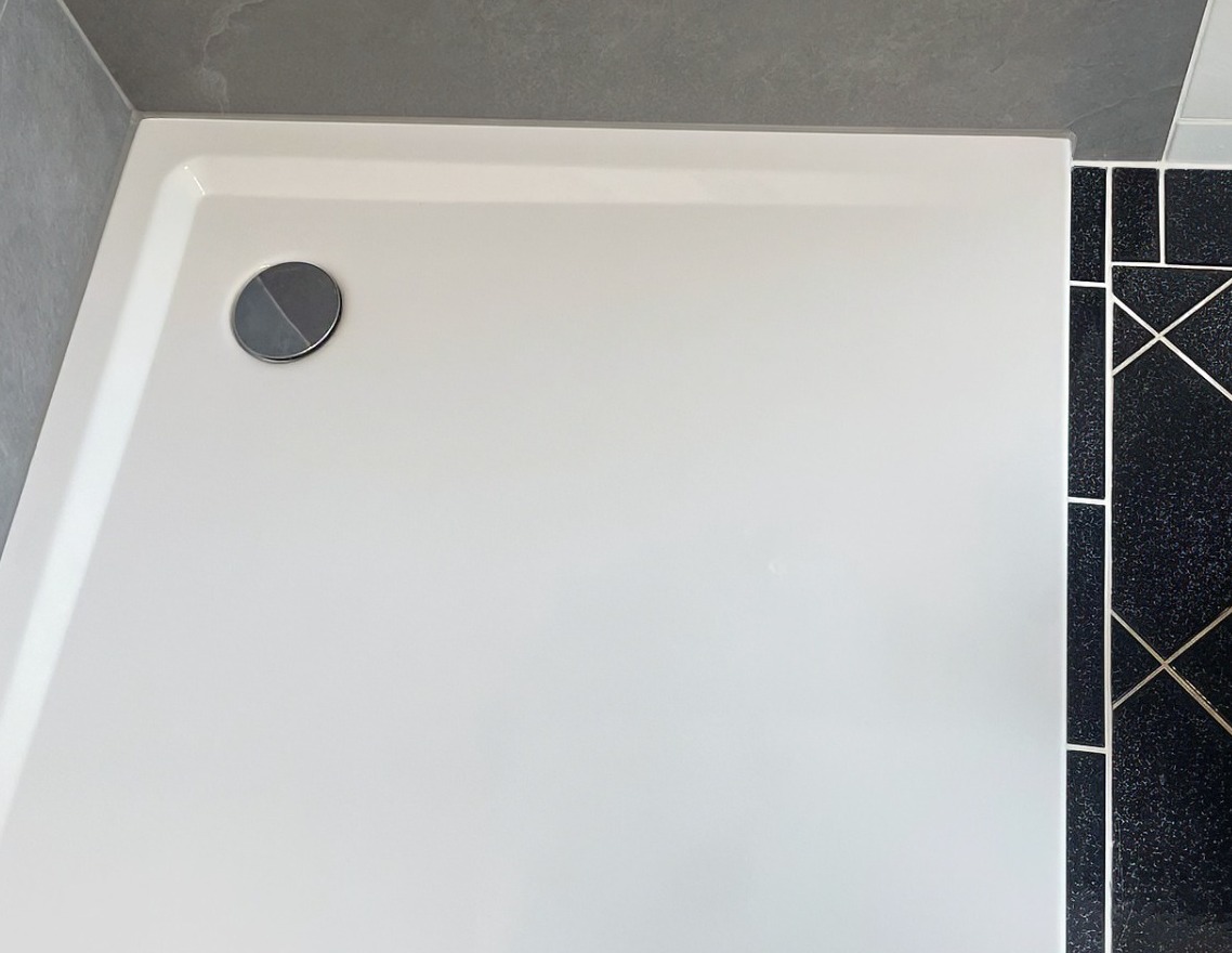 Die empfindliche Silikonfuge kann im Rahmen einer RENOBAD-Badezimmersanierung eingearbeitet werden. Das hat den großen Vorteil, dass sich der Schimmelpilz nicht mehr in die für Schimmel hochgradig anfällige Silikonfuge einnisten kann.